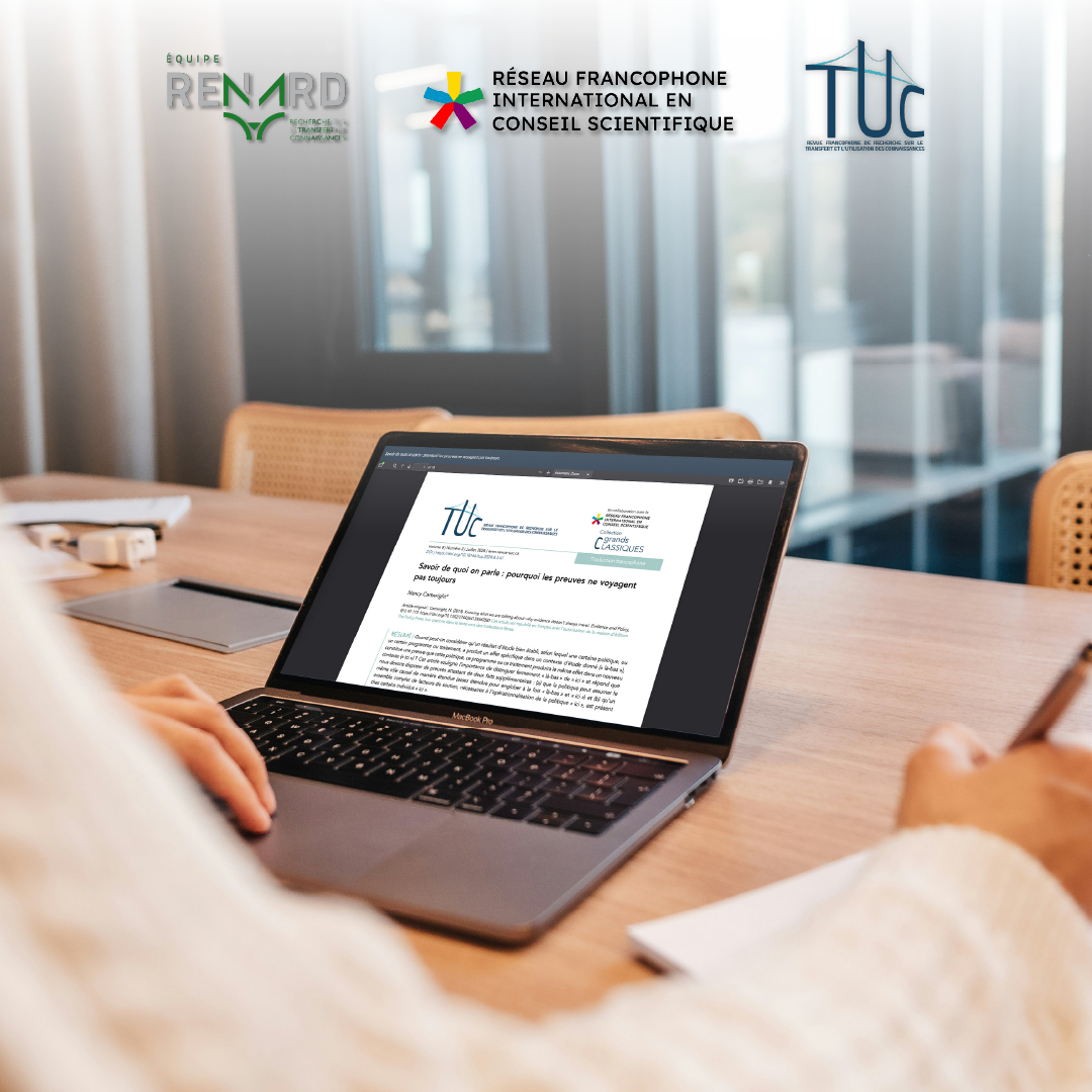 La collection Grands Classiques, fruit d’une collaboration entre l’Équipe RENARD sur le transfert de connaissances et le Réseau Francophone International en Conseil Scientifique (RFICS), continue d’enrichir le contenu scientifique en français sur l’utilisation des connaissances scientifiques dans la prise de décision publique. Deux nouveaux articles, désormais disponibles en français, viennent d’être ajoutés à cette collection.